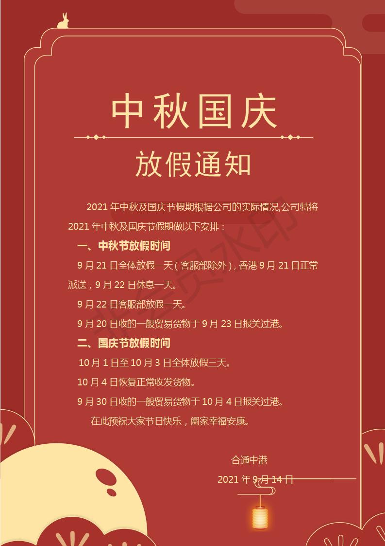 2021中秋國(guó)慶放假通知